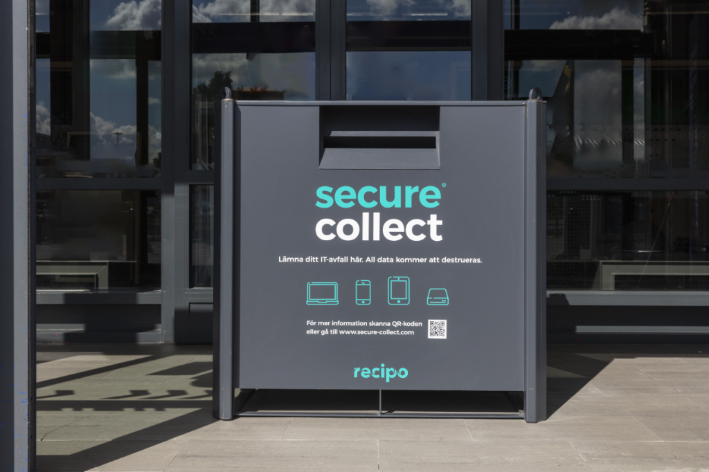 Recipo has developed Secure Collect (LINK), a safe collection specifically aimed at end-of-life products that may contain personal information. Secure Collect is an excellent way to recycle, for example, old mobile phones, laptops, and hard drives. The electronic waste is collected in locked containers that are opened by authorized personnel at our contracted recyclers, who also ensure that all data is erased.